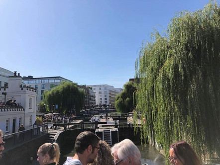I woke up around 8:30 in the morning to go for a walk around the neighborhood I was staying in. It was super cute and there was a waterway amongst the apartment buildings and houses that led to a marina. The area I walked around in was just south of tower bridge. I wanted to go walk on the glass at Tower Bridge and ended up getting it over with right away in the morning when it first opened. This was the only tourist attraction that cost money on the trip for me, it was nine pounds. I beat the crowd of tourist and was able to not only walk across the glass over the road and waterway but was able to take in the great view from the top of the tower. I wandered around the tower bridge area and found numerous cute coffee shops amongst the board walk. I headed back to my hostel to change into clothes and shoes I’d be comfortable walking around in. I left around 11:30 AM to see if I would be able to catch the changing of the guards at Buckingham Palace. I took the underground train for 15 minutes and walked 5 minutes to get to Buckingham Palace. The area around the palace was filled with tourist groups! I was able to find a spot amongst the gate and take pictures of the guards and the palace. Besides the guards, there were police men with huge guns guarding the palace, they went around the gate to let the tourist know the changing of the guards didn’t happen on Saturday’s. After hearing that news I was disappointed but headed towards the next touristy area. BIG BEN! Big Ben was not as cool as it was hyped up to be. I couldn’t even see the clock because of the renovations they are completing on it. This area was so hard to walk around because it was filled with tourist. I walked over the bridge next to Big Ben and headed towards the museum and the London Eye. This area was cool but still super touristy feel. I felt the need to get away from the tourist hot spots and headed toward the Camden Market recommend by a friend.